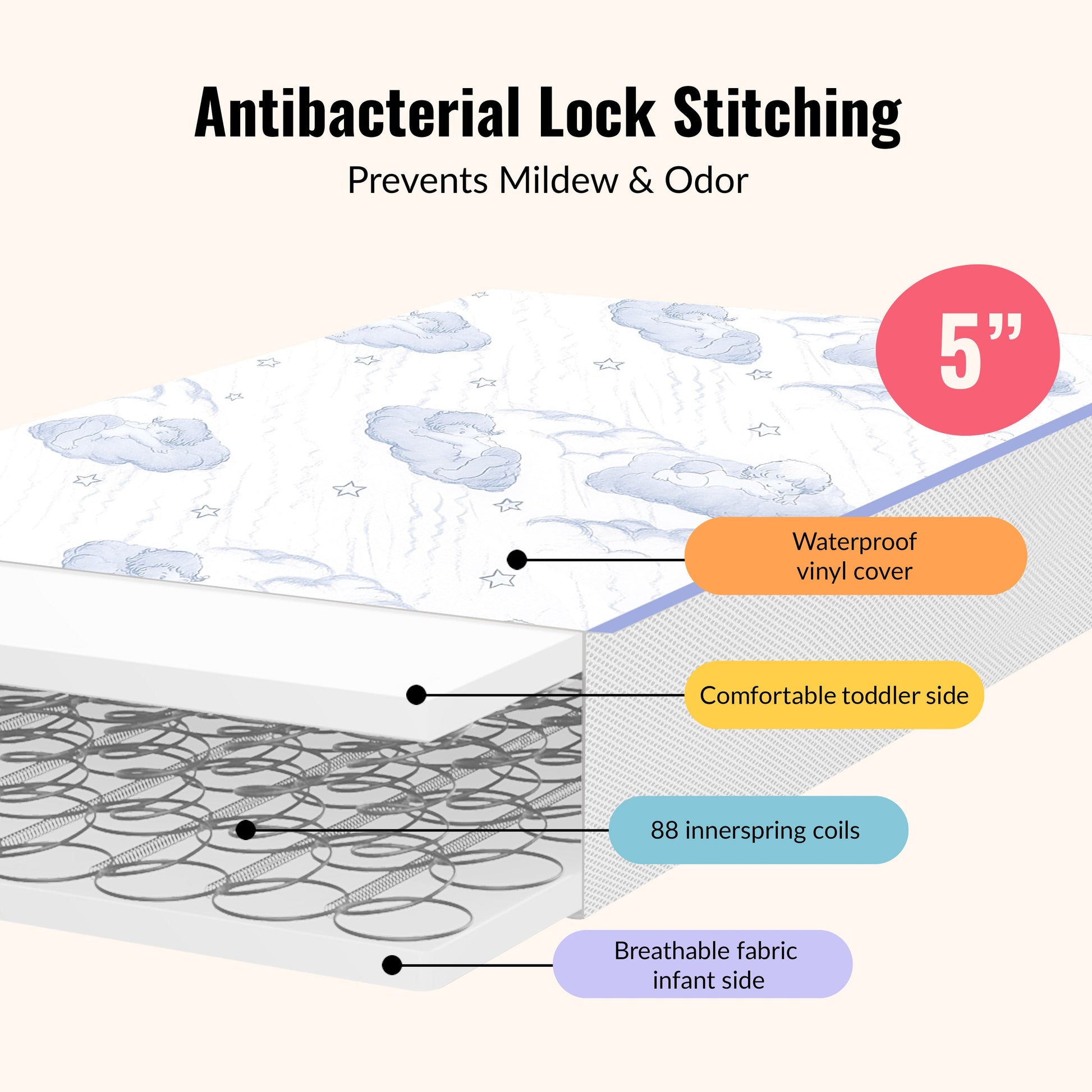 Award-winning and thoughtfully designed, the Sweet Dreams mattress pairs breathable comfort with durable support—made for safe, cozy sleep from the crib stage to toddlerhood.
