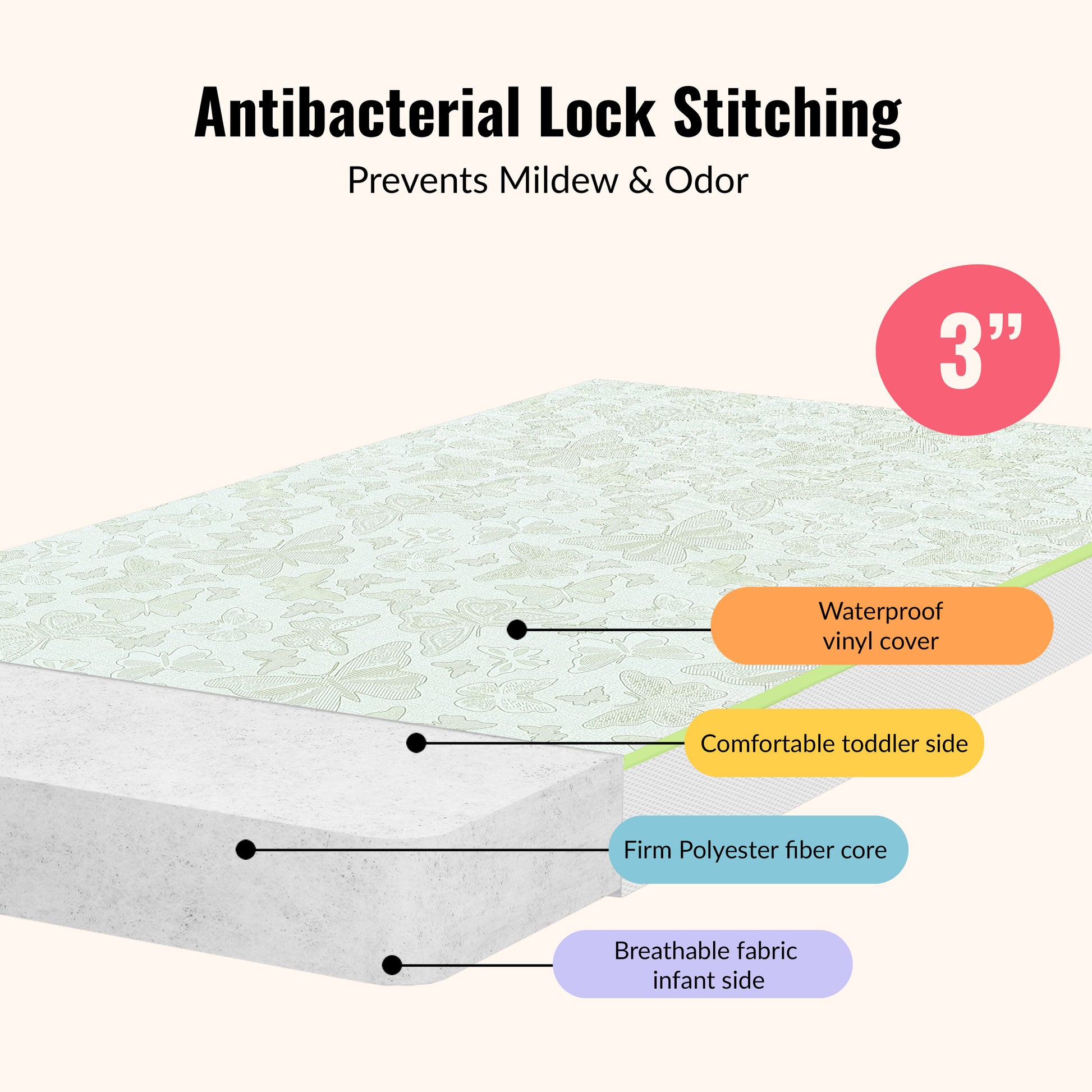 Dream On Me 2-In-1 Breathable Two-Sided, Portable Crib Fiber Mattress in White & Green