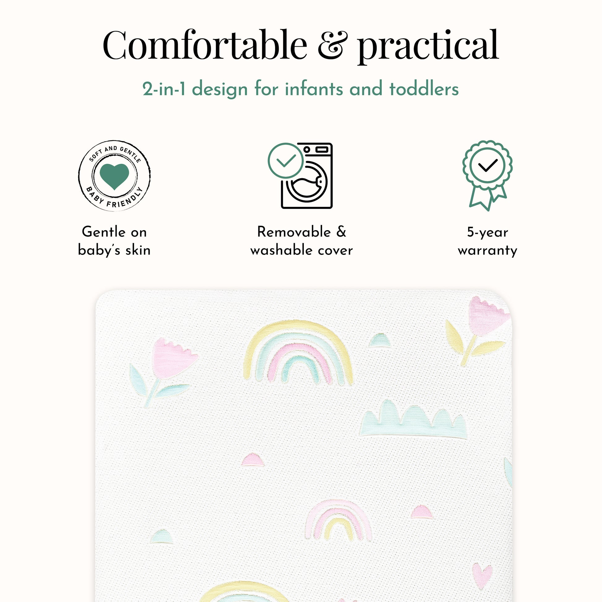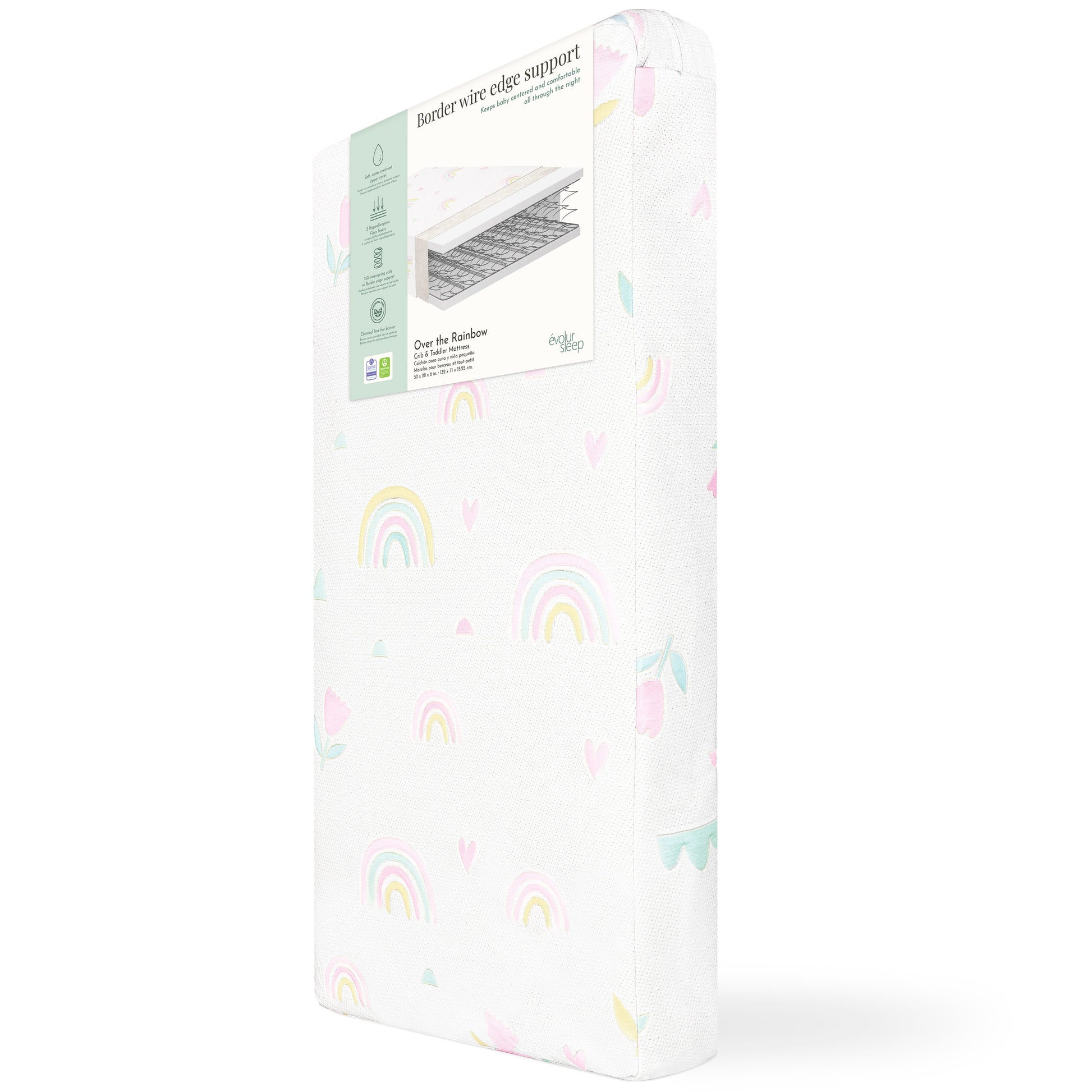 Sweet dreams begin with the Over the Rainbow Mattress—crafted for cozy sleep, healthy rest, and long-lasting comfort from infancy to toddlerhood. Designed with edge-to-edge support and wrapped in playful, waterproof protection.