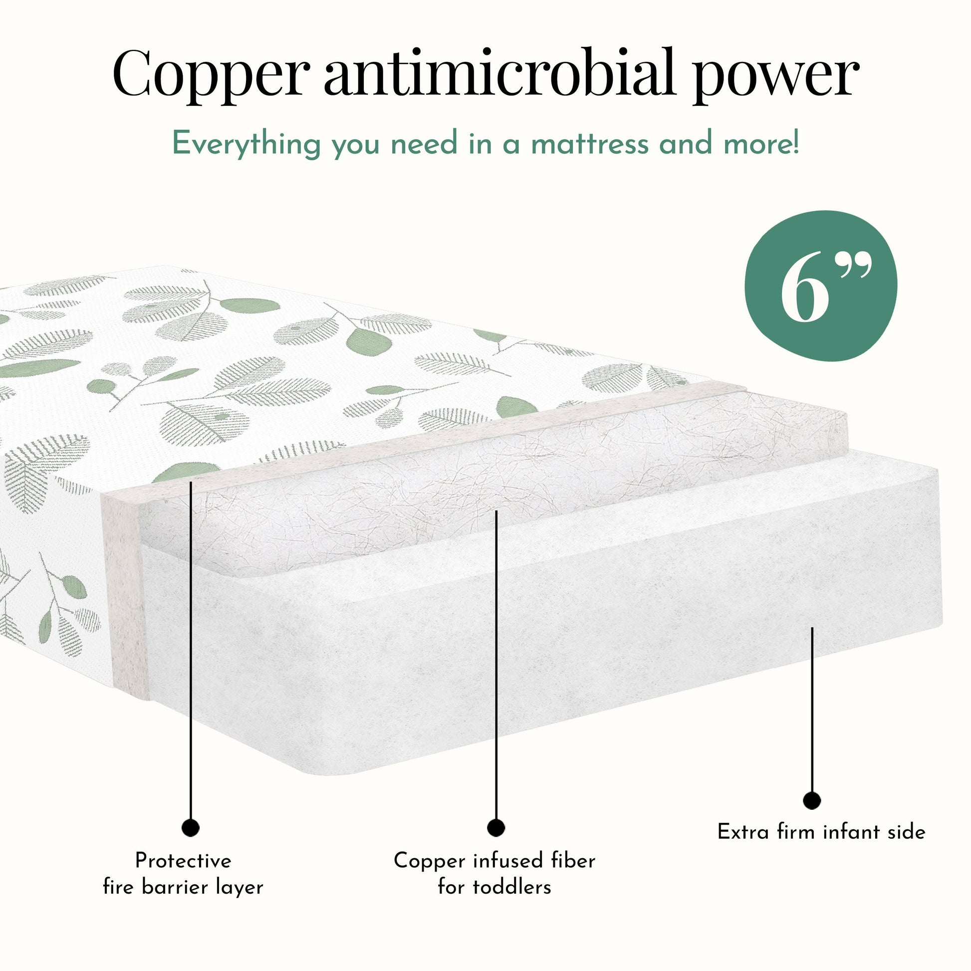 The Dream On Me Utopia 2-in-1 Infant and Toddler Mattress offers maximum support and comfort with its ultra-firm infant side and copper-infused toddler layer. Greenguard Gold certified and easy to maintain.